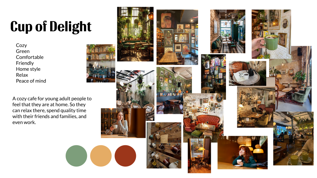 The Cup of Delight project unfolded smoothly, resulting in a successful establishment of a welcoming and eco-conscious café. In future endeavors, I aim to improve customer engagement through targeted marketing and streamline operational processes for enhanced service delivery. A key takeaway is the significance of maintaining a cohesive visual identity aligned with the brand’s values. This project has provided valuable insights into the nuances of café concept creation, guiding our approach in future ventures.