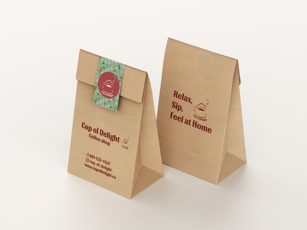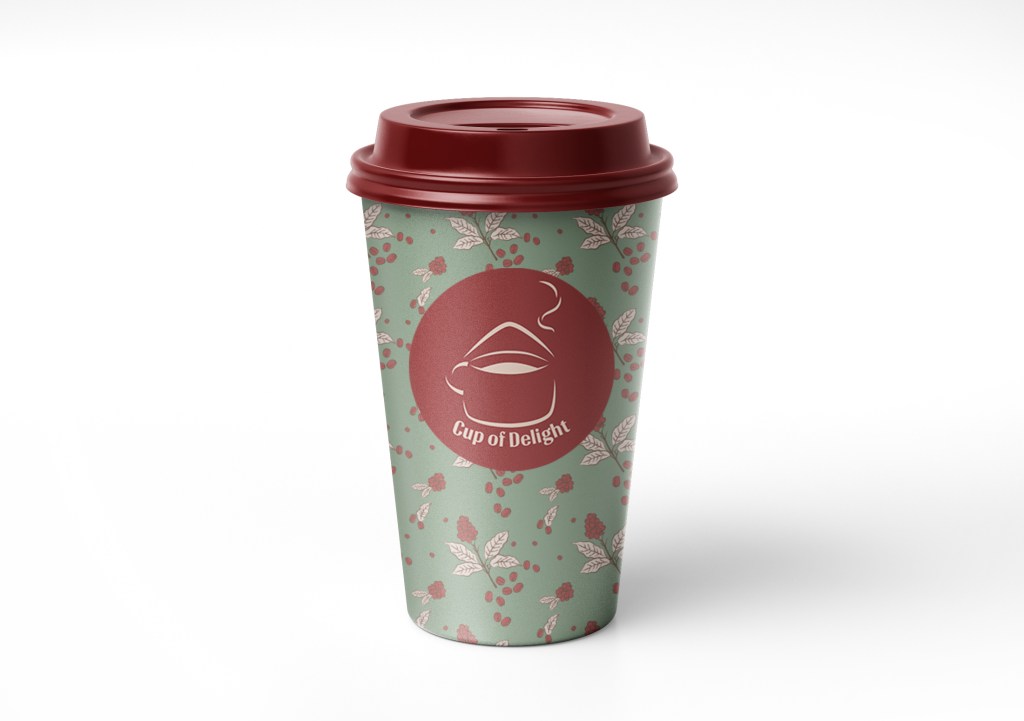 Three captivating patterns, born from the inspiration of coffee beans and trees, come together in packaging design at Cup of Delight. Each pattern, infused with a unique color combination, embodies the essence of the café experience. These visually striking designs convey warmth, vitality, and a connection to nature, reflecting the cafe’s commitment to sustainability and creating a welcoming atmosphere.