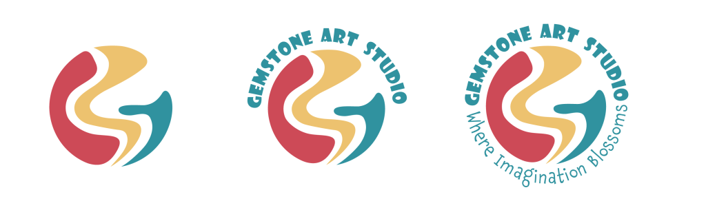 The logo design for Gemstone Art Studio incorporates abstract shapes representing the letter “G,” symbolizing the studio’s focus on discovering hidden talents and potential (“gems”) within young artists. The use of three different shapes and colors adds visual interest and captures the attention of the target audience. The rounded typeface of the studio’s name and handwritten tagline (“Where Imagination Blooms”) further reinforces the brand’s friendly and welcoming ethos.