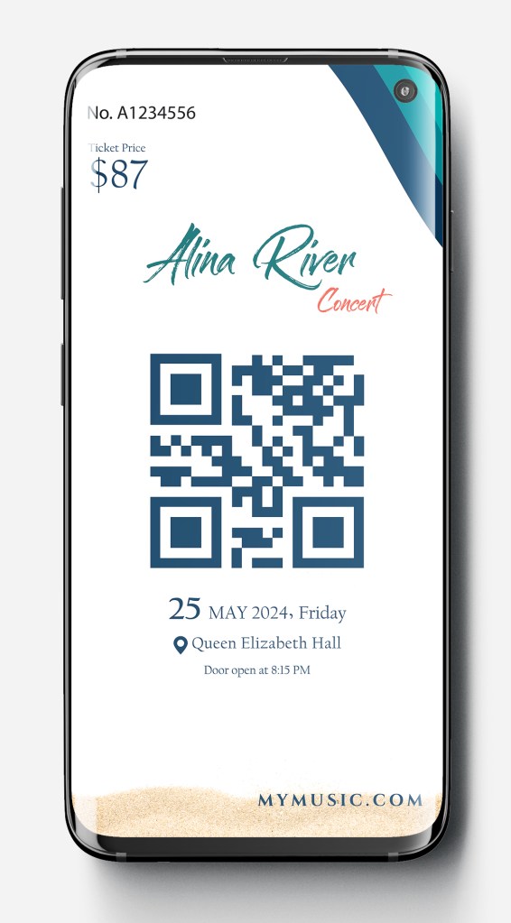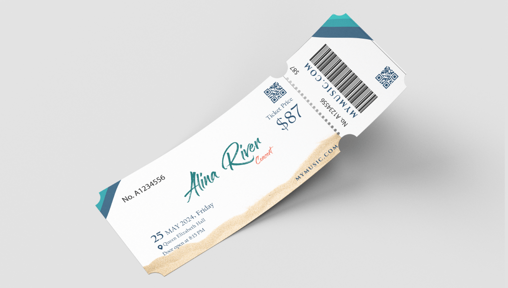 For the concert ticket design, simplicity and elegance take center stage, with a focus on essential information and a nod to the tranquil seaside theme. Drawing inspiration from the sandy shores and the gentle undulations of the sea, the ticket features a clean and minimalist design.